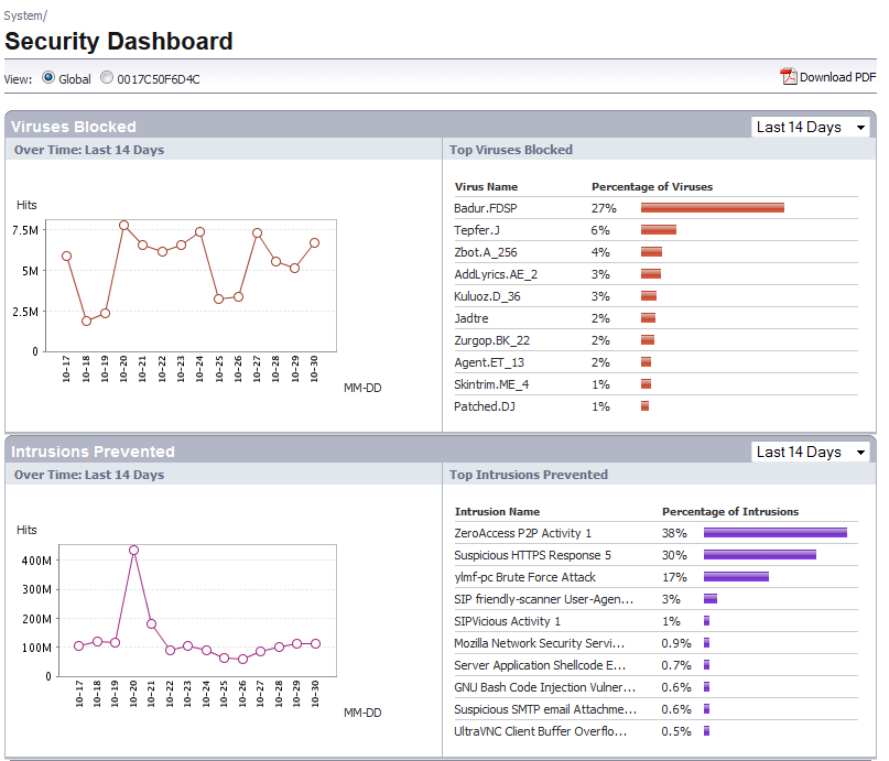 Sonicwall permite generar informes que nos indican todos los virus, malware, intrusiones o trafico gestionado